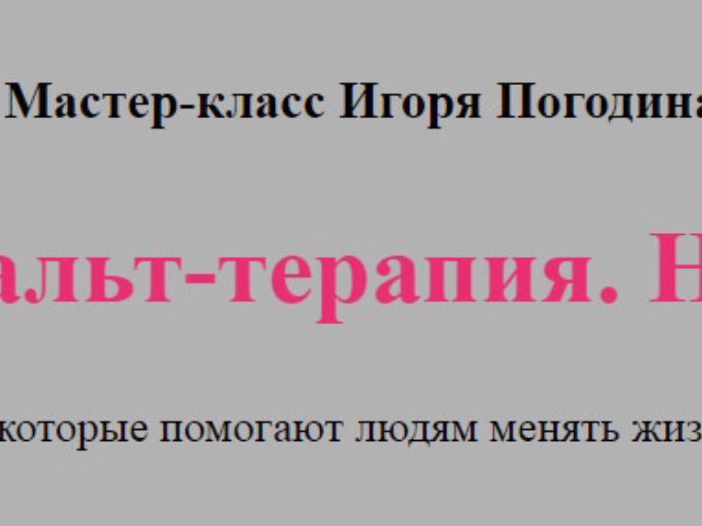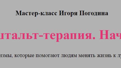 - Знакомство с авторским методом Игоря Погодина - Психотерапией Переживанием