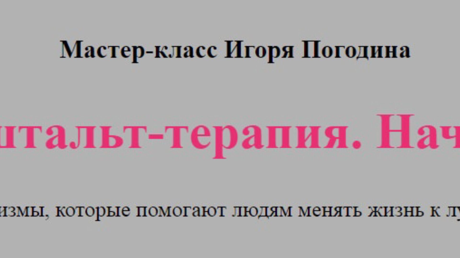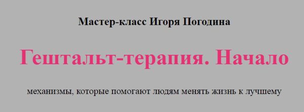 Игорь Погодин «Гештальт-терапия. Начало» слив скачать