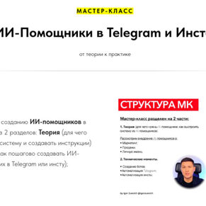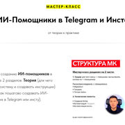- Пошаговый Мастер-Класс процесс создания ИИ-помощников в Telegram и инсту для внедрения в Воронки Продаж, Умные Лид-магниты, Личную жизнь и т.п.;