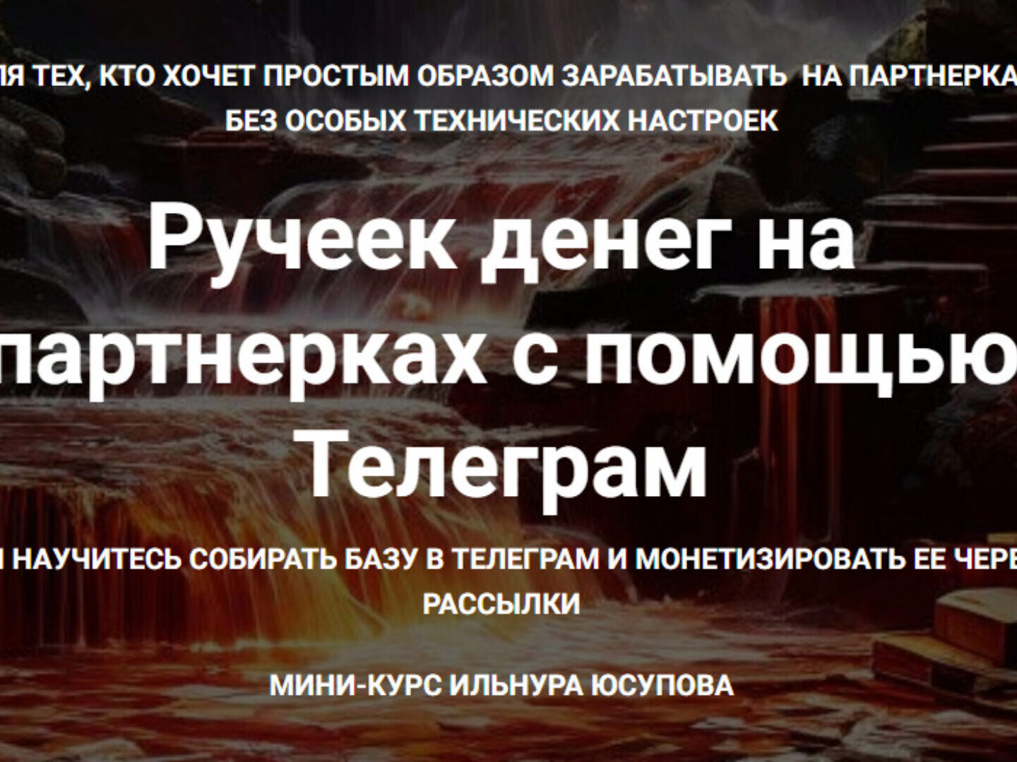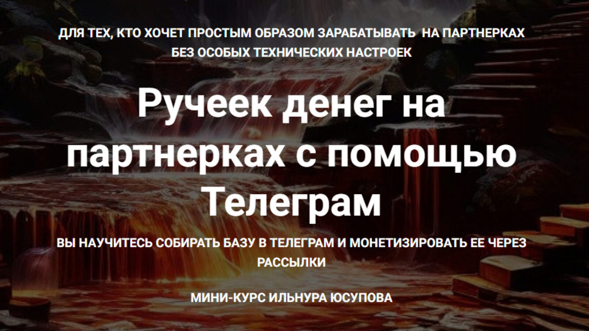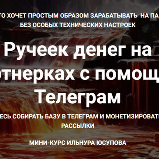 Ильнур Юсупов «Ручеек денег на партнерках с помощью Телеграм+5 других кейсов по заработку 50,000-1,000,000 рублей» слив скачать