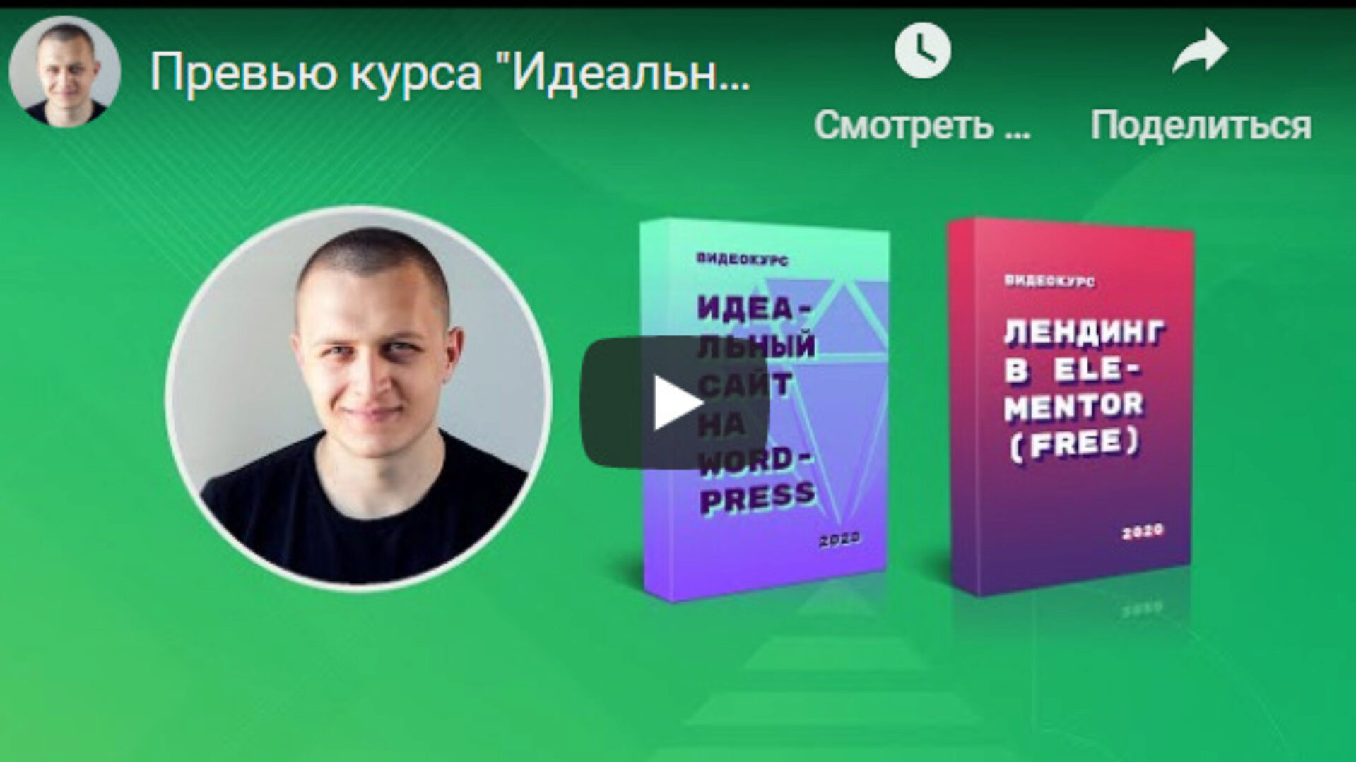 Курс «Идеальный сайт на WordPress» 35 уроков длительностью 5 часов 10 минут