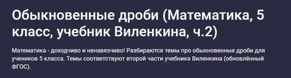 Отзывы о курсе «Обыкновенные дроби. Математика, 5 класс, учебник Виленкина, ч.2» от Ильи Панкратова