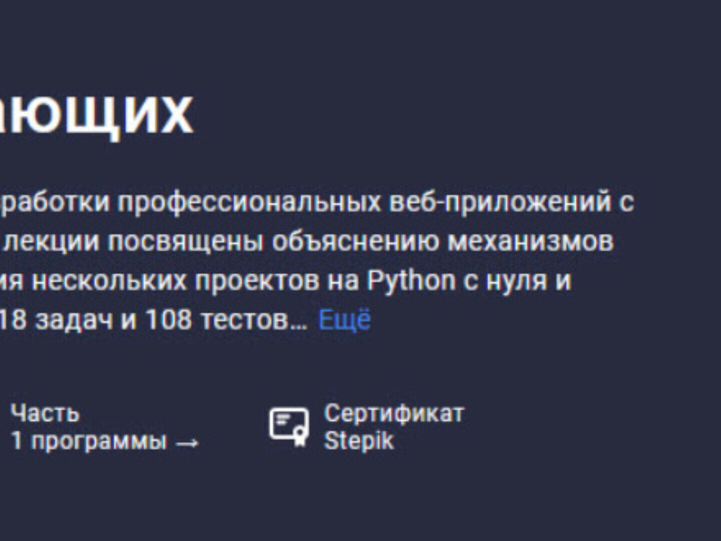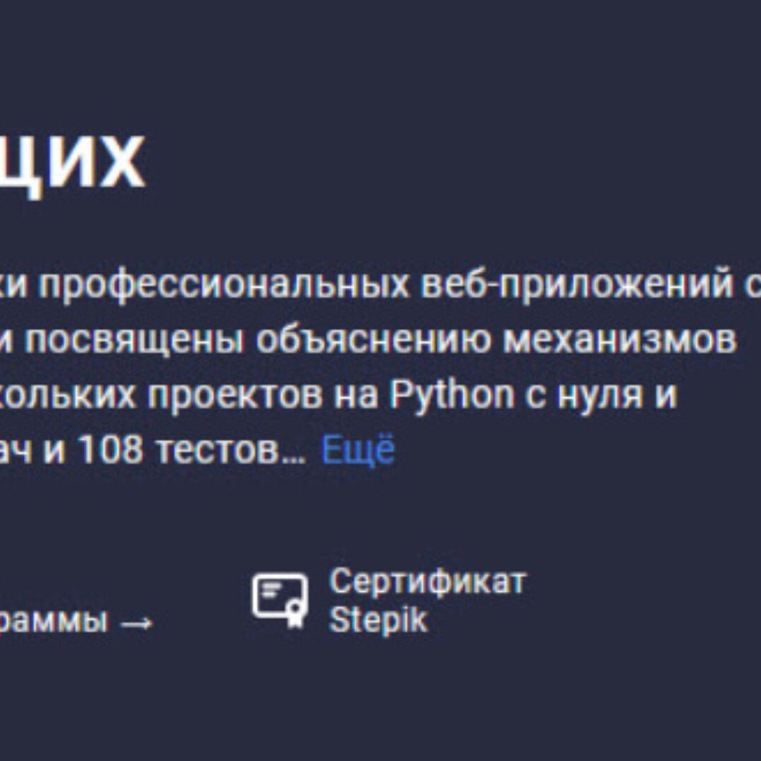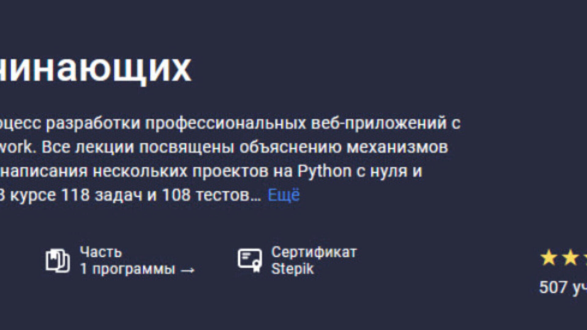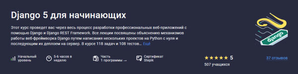 Курс Django 5 для начинающих и Продвинутый Django 5 для продолжающих, автор Илья Перминов. Этот курс проведет вас через весь процесс разработки профессиональных веб-приложений с помощью Django и Django REST Framework. Все лекции посвящены объяснению механизмов работы веб-фреймворка Django путем написания нескольких проектов на Python с нуля и последующим их деплоем на сервер. В курсе 118 задач и 108 тестов для закрепления и проверки знаний. Внимание, данный курс не содержит ни минуты видео!