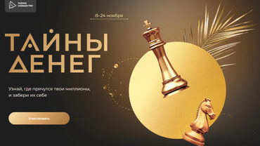 «Тайны Денег» — это 17-ти дневный марафон обучения в формате онлайн-практикума, на котором более 30 спикеров-миллионеров выступят со своими мастер-классами, чтобы передать участникам: