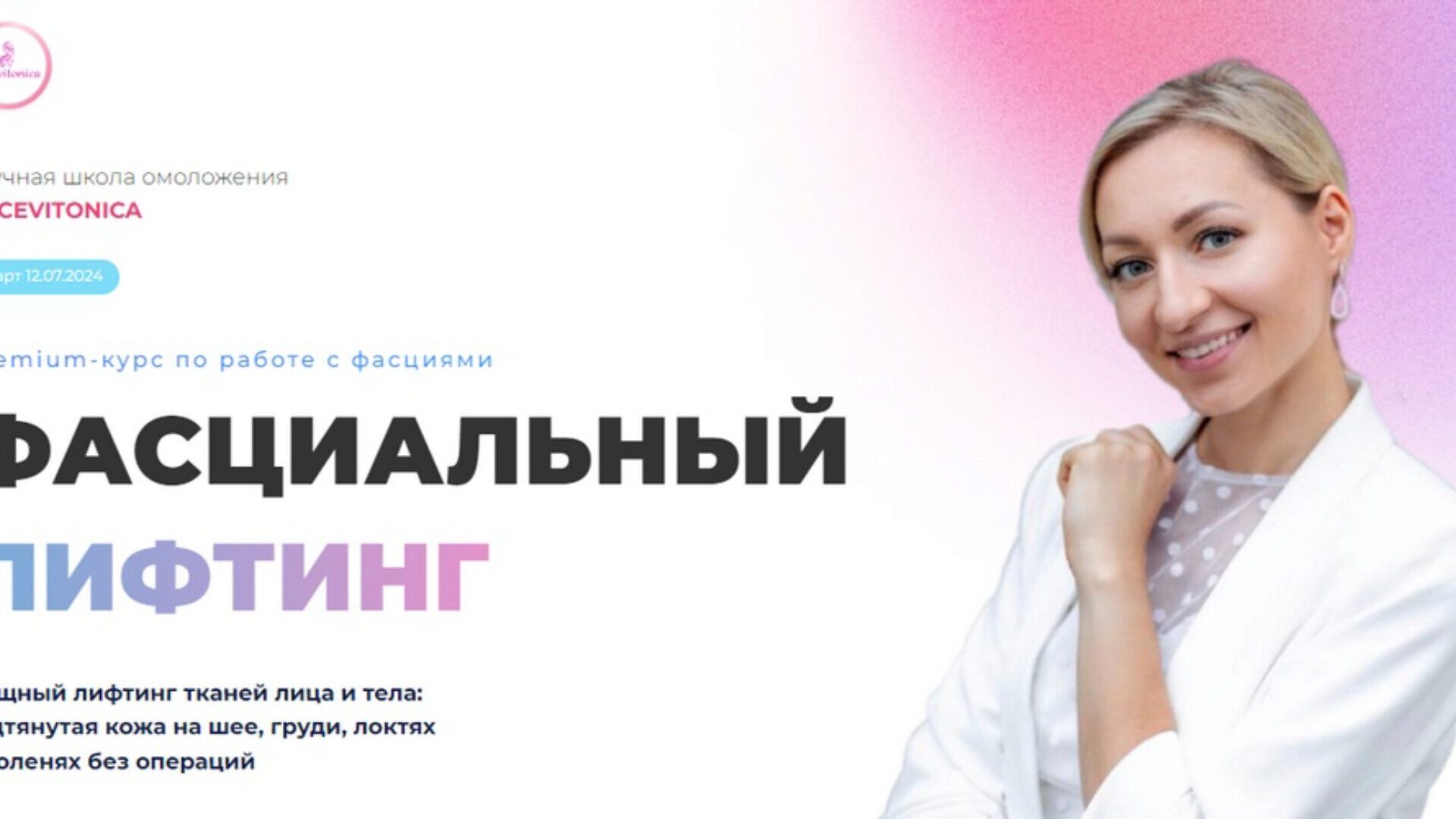Курс Facevitonika - Фасциальный лифтинг, 6 поток. Тариф Самостоятельный. Июль 2024, автор Инна Алфёрова. Мощный лифтинг тканей лица и тела: подтянутая кожа на шее, груди, локтях и коленях без операций