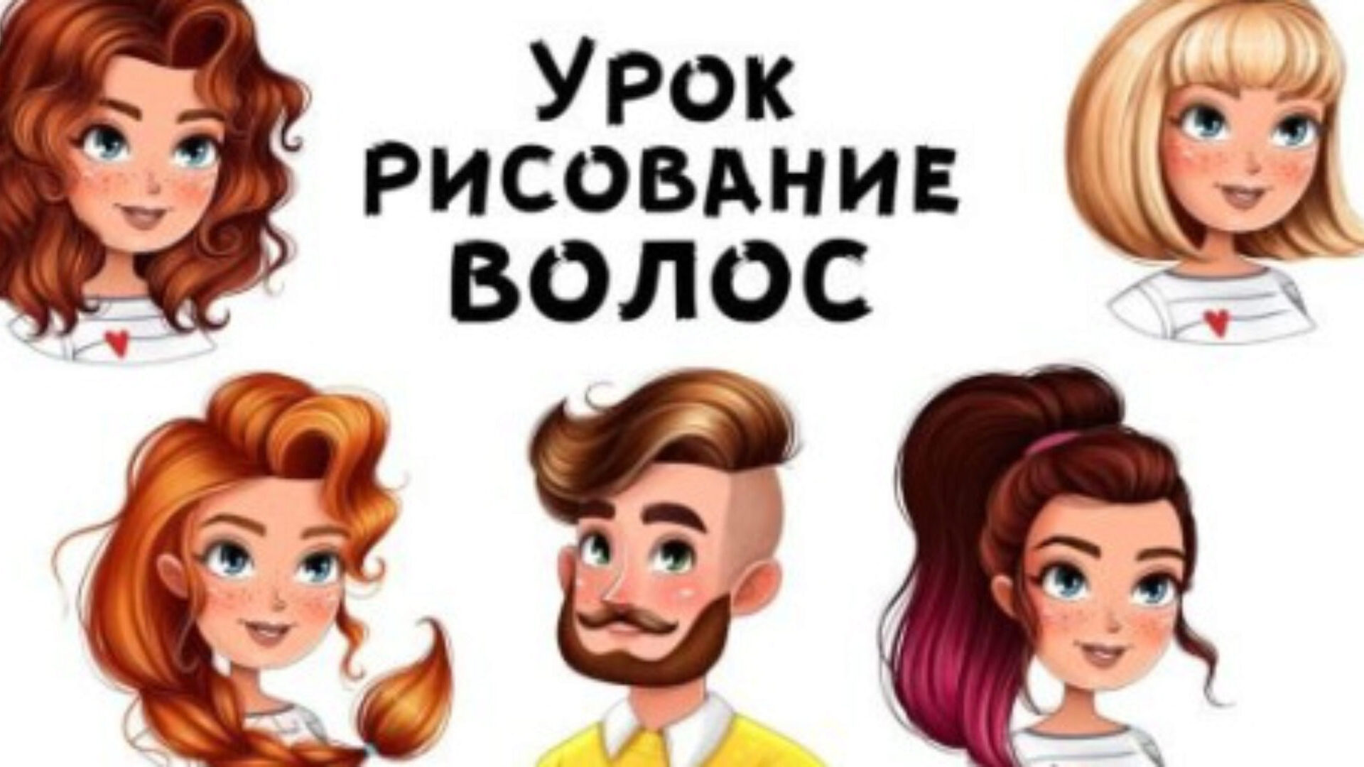 Алгоритм рисования 4х женских причесок с разным цветом и типом волос ( блондинка + прямые волосы, шатенка + кудри, рыжая + коса, брюнетка + хвост + цветной градиент).