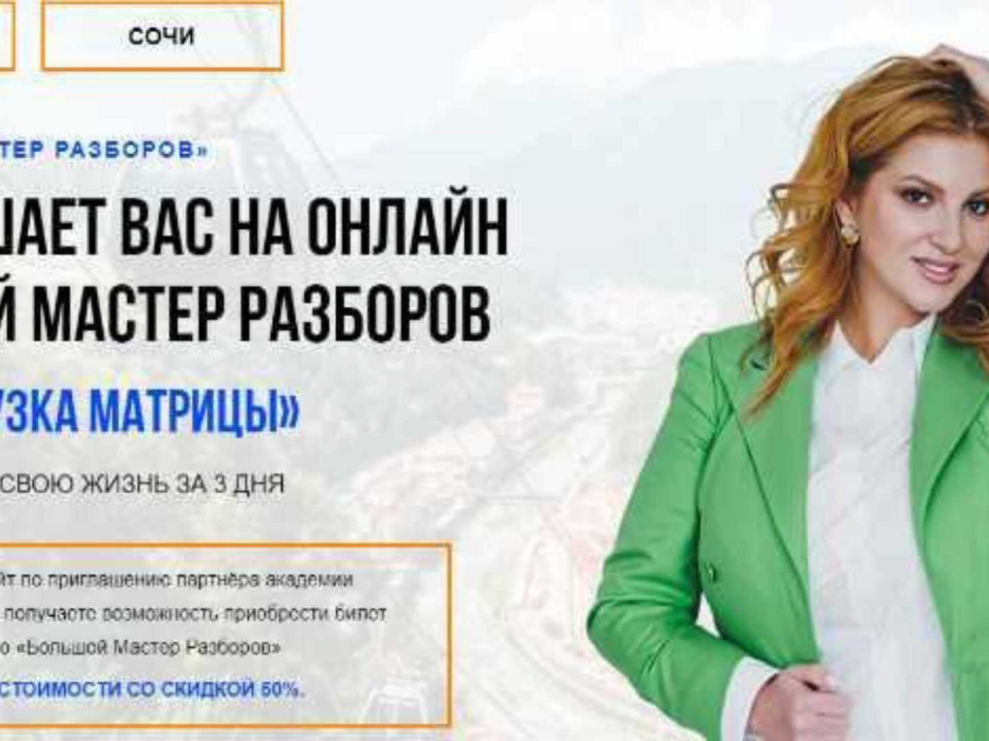 САМАЯ БЫСТРАЯ ТРАНСФОРМАЦИЯ В ВАШЕЙ ЖИЗНИ! Примите участие в реалити-шоу и заберите самую ценную награду в своей жизни! Вы готовы? Найти ответы на главные вопросы своей жизни Открыть возможности, о которых и не мечтали Построить отношения в любви и счастье Услышать себя и занять свое место в