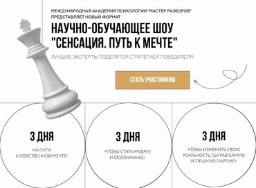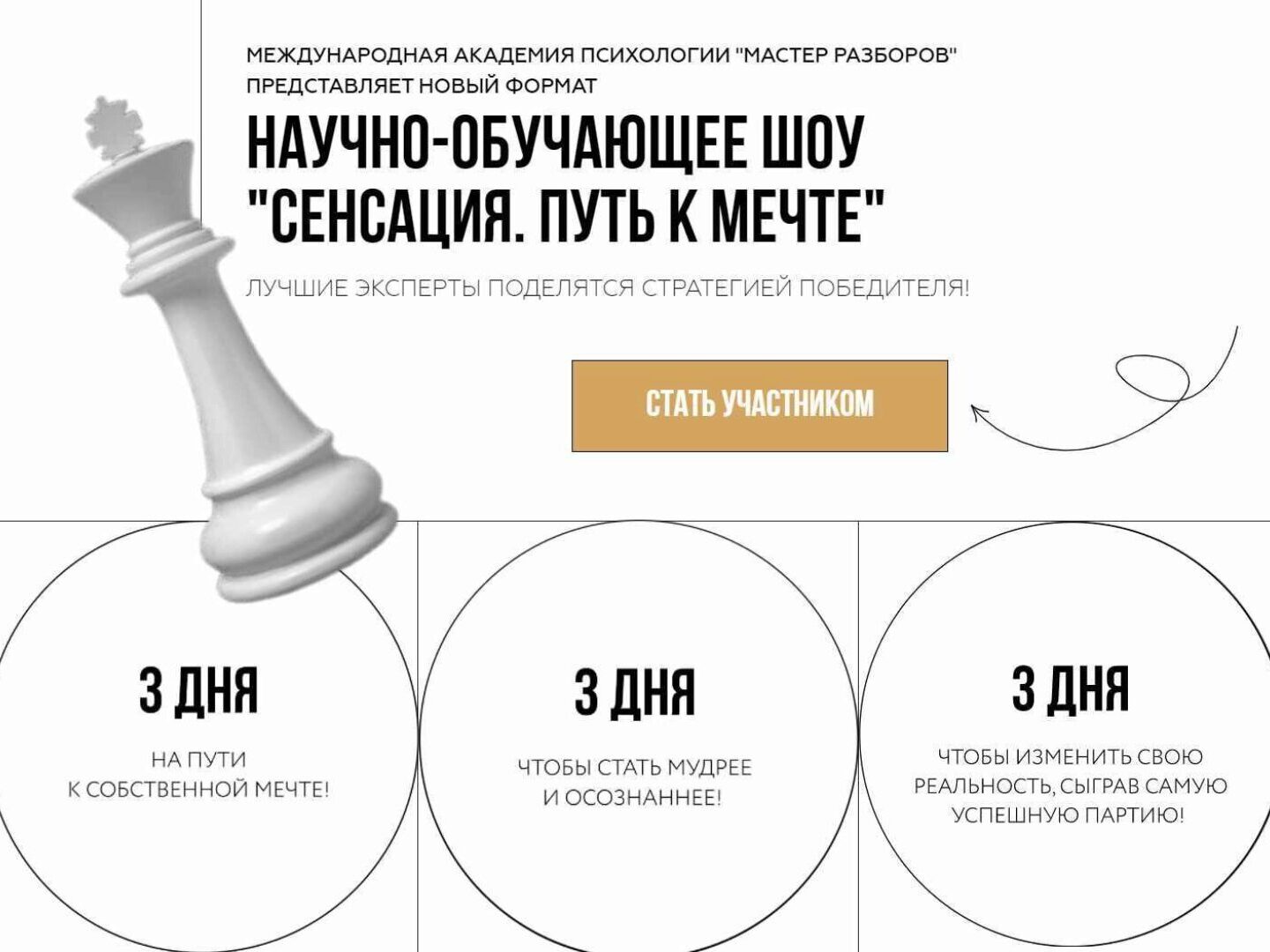 В ходе научно-обучающего ШОУ, Вы научитесь мыслить, как ведущий гроссмейстер – виртуозно управлять реальностью и событиями, выбирая из множества вариантов стратегию победителя.