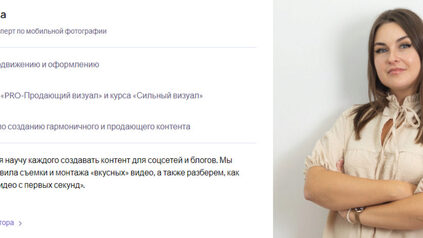 Продолжительность: 9 недель 10 проектов в портфолио Более 11 365 человек выбрали наши курсы Это курс с нуля для тех, кто понимает, что съёмка на мобильный телефон — это тренд, а вертикальные видео набирают просмотров сейчас больше, чем любой другой формат. Курс поможет освоить мобильную съемку и