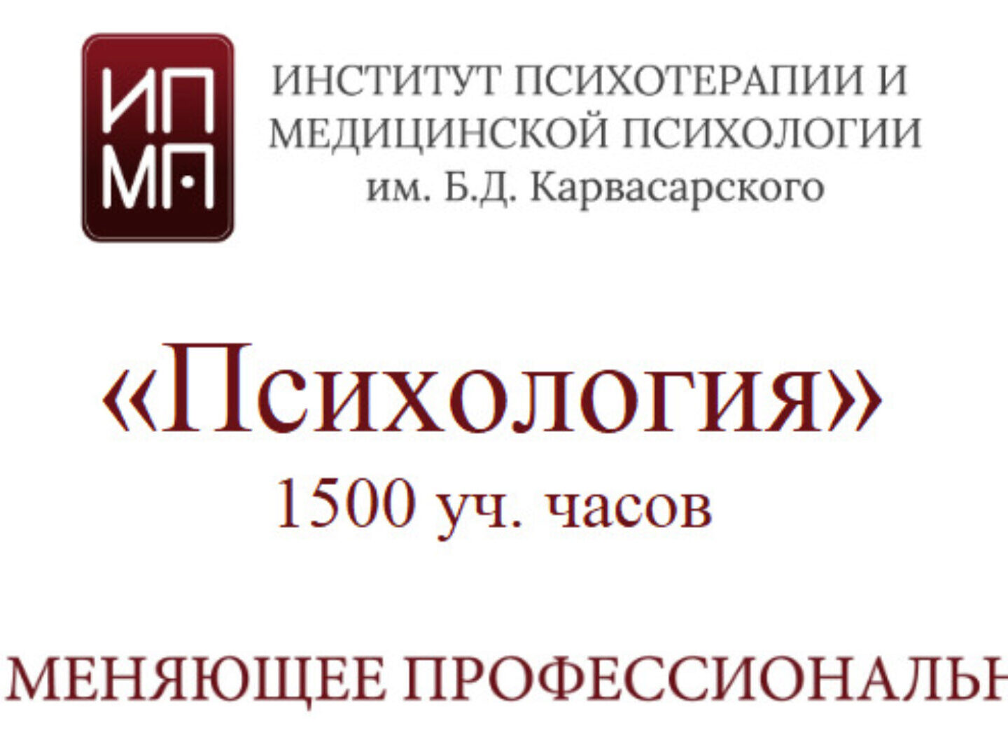 Институт психотерапии и медицинской психологии им. Б.Д. Карвасарского