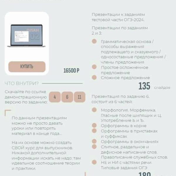 При покупке учитывайте, что в данной складчине: Нет презентации к Заданию 3. Отсутствует 2 часть
