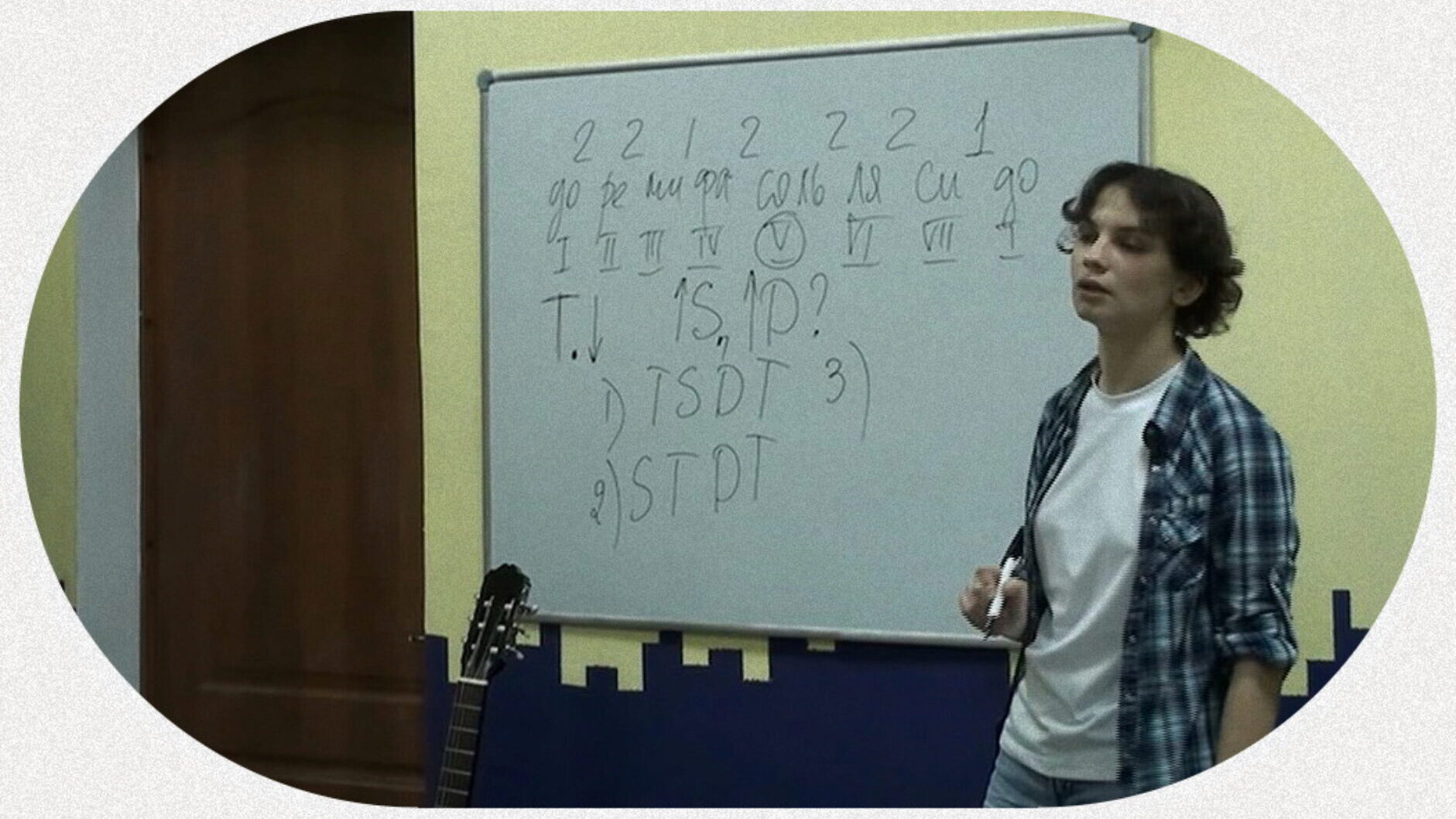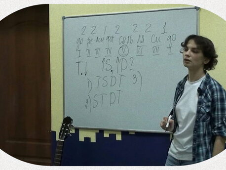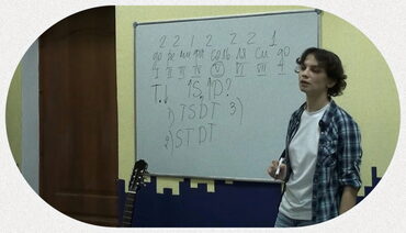 • В течение всего курса занятий — подбор по слуху и анализ. Взяли песню — разбираем и записываем на доске структуру, аккордовую сетку, а потом подбираем и пишем саму мелодию. Подбирать станет легко, в чём-то даже скучно.
