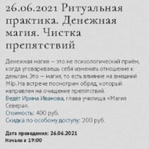 Отзывы о курсе «Ритуальная практика. Денежная магия. Чистка препятствий» от Ирины Ивановой