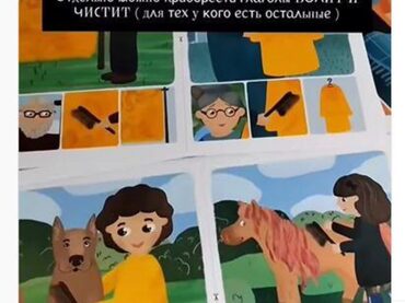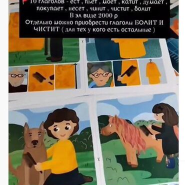 Пособие включает: - 20 карточек - действий - 20 карточек - нелепиц - 20 карточек - действий в прошедшем времени - 20 пиктограмм - 20 картинок предметов (отвечающие на вопрос «ЧЕМ» ) - 20 картинок предметов (отвеч. на вопрос «ЧТО») - 4 плашки для ассоциативного ряда - 12 картинок (отвечает на «КТО»)