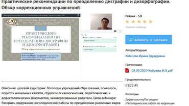 Отзывы о курсе Вебинары «Практические рекомендации по преодолению: дисграфии, дизорфографии, дислексии и дискалькулии. Обзор упражнений» от Ирины Кобозевой