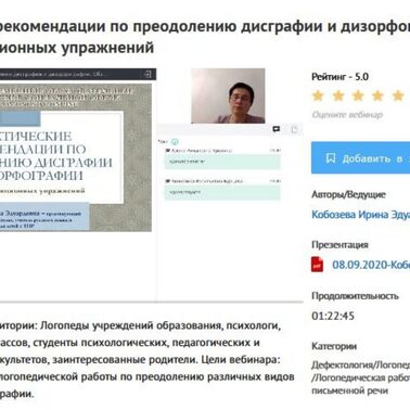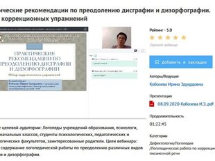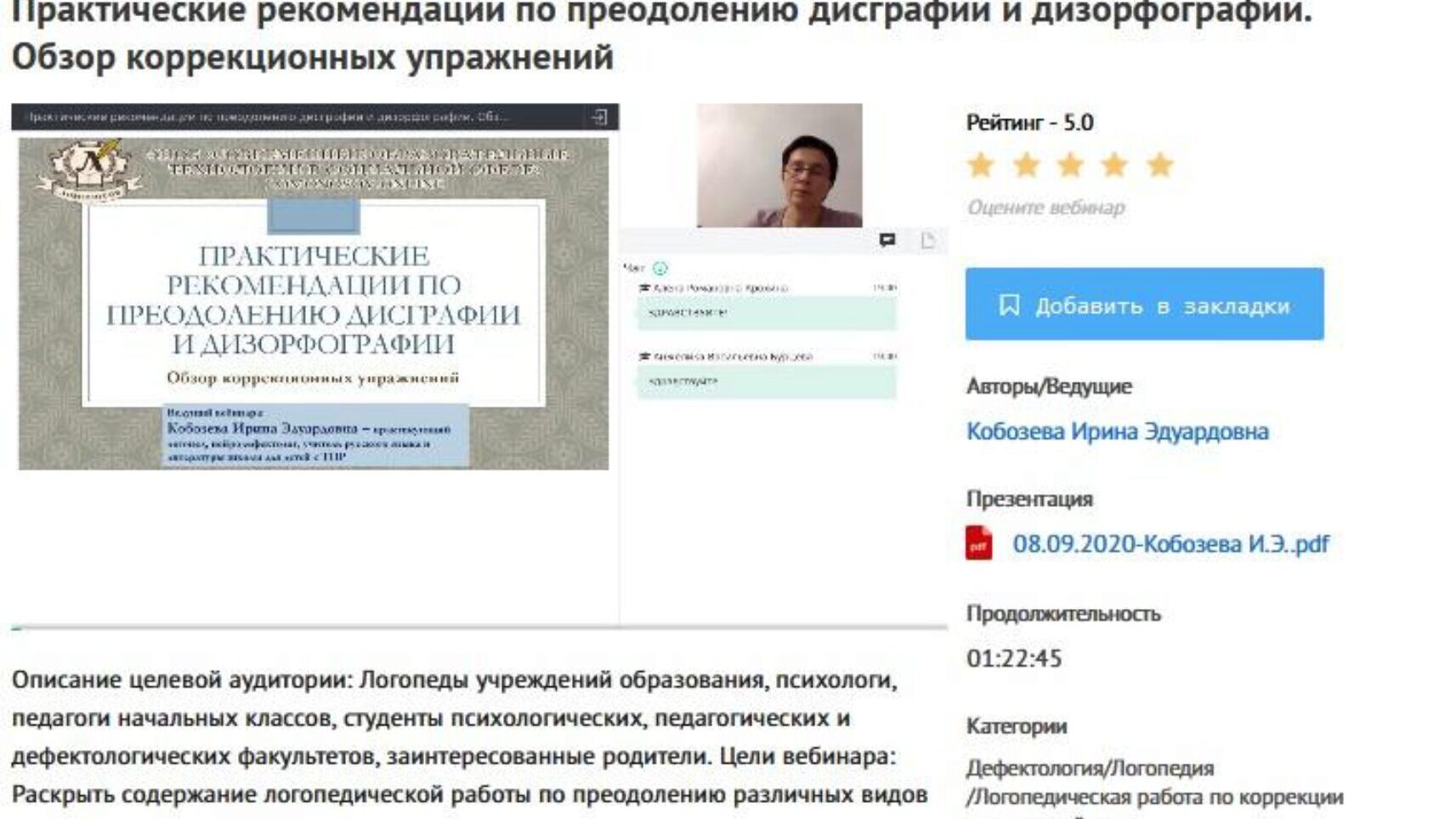 Ирина Кобозева Вебинары «Практические рекомендации по преодолению: дисграфии, дизорфографии, дислексии и дискалькулии. Обзор упражнений» — УИПКиП слив скачать