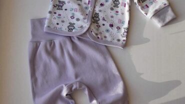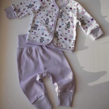 Штанишки из хб кулирки, ластика или интерлока. 5 размеров - 56-62, 62-68, 68-74, 74-80, 80-86. Бонусом идет выкройка распашонки с кнопкой на плече 56 размера.