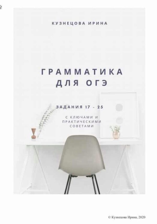 Курс Грамматический справочник. ОГЭ, автор Ирина Кузнецова. Сборник включает в себя разбор заданий 17-25 ОГЭ, а также простые и удобные объяснения грамматики, около 5 упражнений к каждой теме, лайфхаки для правильного выполнения задач, разбор самых частых ошибок, правильное заполнение бланка ответов, ключи к упражнениям.