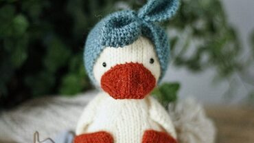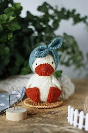 В формате PDF. 23 стр, 65 фотографии процесса. Все детали вяжутся на трёх спицах, четвёртая рабочая. Уши крючком. Голова и лапки пришиваются. Готовая игрушка получается 14 см. Есть короткие ряды в технике « Оберни и поверни » . Содержит описание свитера. Основная пряжа Alize Alpaca Royal. Спицы 1,8