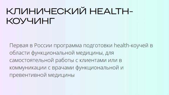 Клинический health-коучинг УОМ | PreventAge Первая в России программа подготовки health-коучей в области функциональной медицины, для самостоятельной работы с клиентами или в коммуникации с врачами функциональной и превентивной медицины Это комплексная экспертная программа подготовки