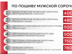 — раскрой и пошив мужской сорочки с длинным рукавом;