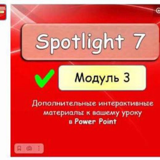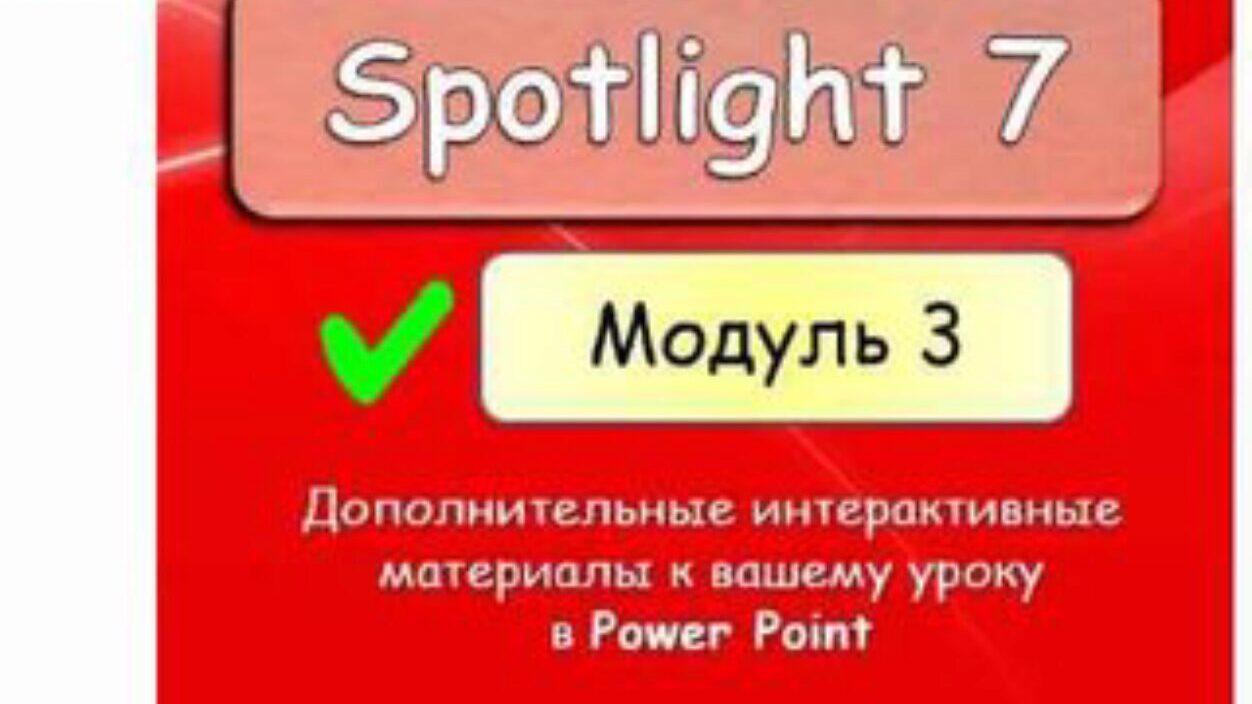 ТА-ДАААМ Встречаем SPOTLIGHT 8 Module 3 ГОТОВЫЕ интерактивные уроки уже ждут вас! Мы вложили время, труд, энергию и любовь ДЛЯ ВАС, дорогие! На работе нужно отдыхать! Внутри: 1. Дополнительные упражнения 2. Отработка слов 3. Теория и практика по грамматике 4. Юмор, наш юмор)) Авторы учебника