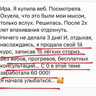 Отзывы о курсе «Как выстроить бизнес и продажи так, чтобы спокойно спать и ездить в отпуск» от Ирины Подрез