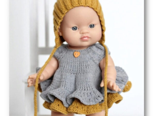 Описание вязания комплекта одежды для пупса Горди 34см. По данному МК можно связать колпачок на голову, платье с крылышками, трусики и носочки. Для вязания понадобятся спицы чулочные и круговые номер 2,5 и чулочные номер 2. Крючок номер 2 для закрытия петель на платье. Нитки Yarn Art Jeans