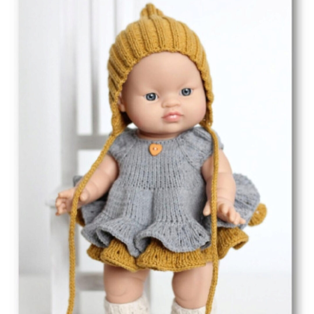Описание вязания комплекта одежды для пупса Горди PaolaReina, Minikane 34см По данному описанию можно связать платье, колготки и шапочку Колпак Для работы понадобится пряжа Yarn Art Jeans 50г/160м, спицы чулочные и круговые номер 2 и 2,5