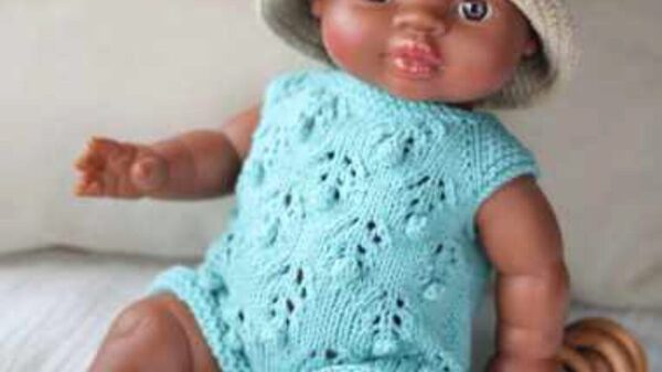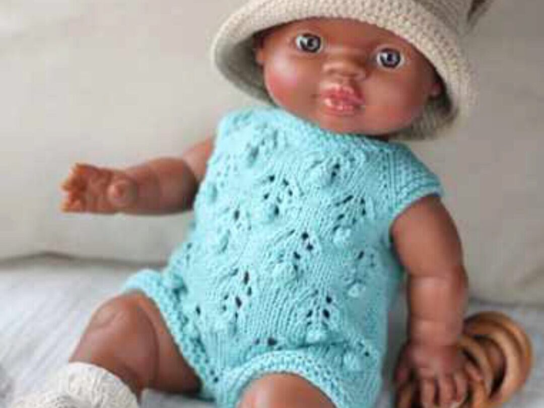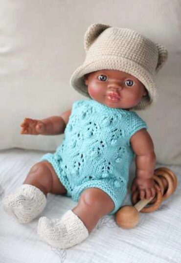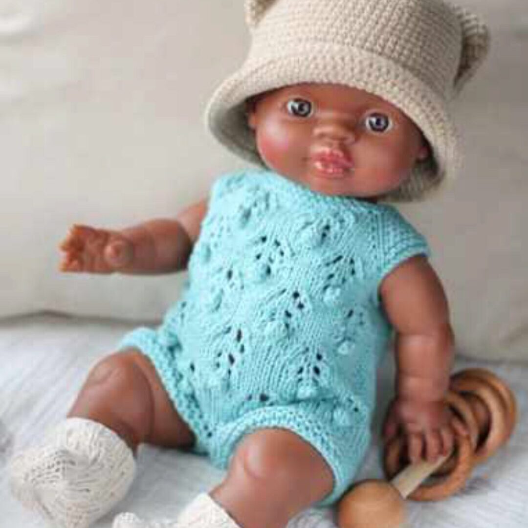Описание вязания комплекта одежды для пупса Gordi PaolaReina 34см. По данному описанию вы свяжете платье, шапочку Эльф, трусики и ажурные гольфы. Комплект связан нитками Yarn Art Jeans 50г/160м, спицы номер 2.