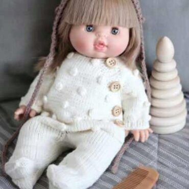 Описание вязания комплекта одежды для пупса Горди Paola Reina. По данному МК вы свяжете кардиган с капюшоном и ползунки. Пряжа Yarn Art Jeans 50g/160m спицы круговые и чулочные 2 и 2,5. Файл в формате pdf.
