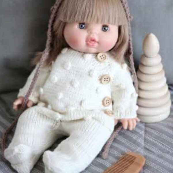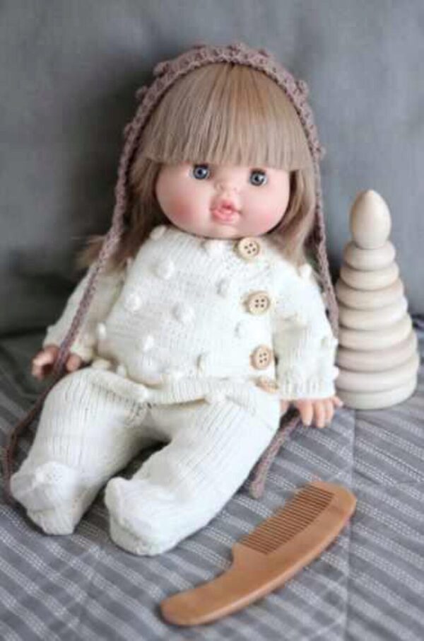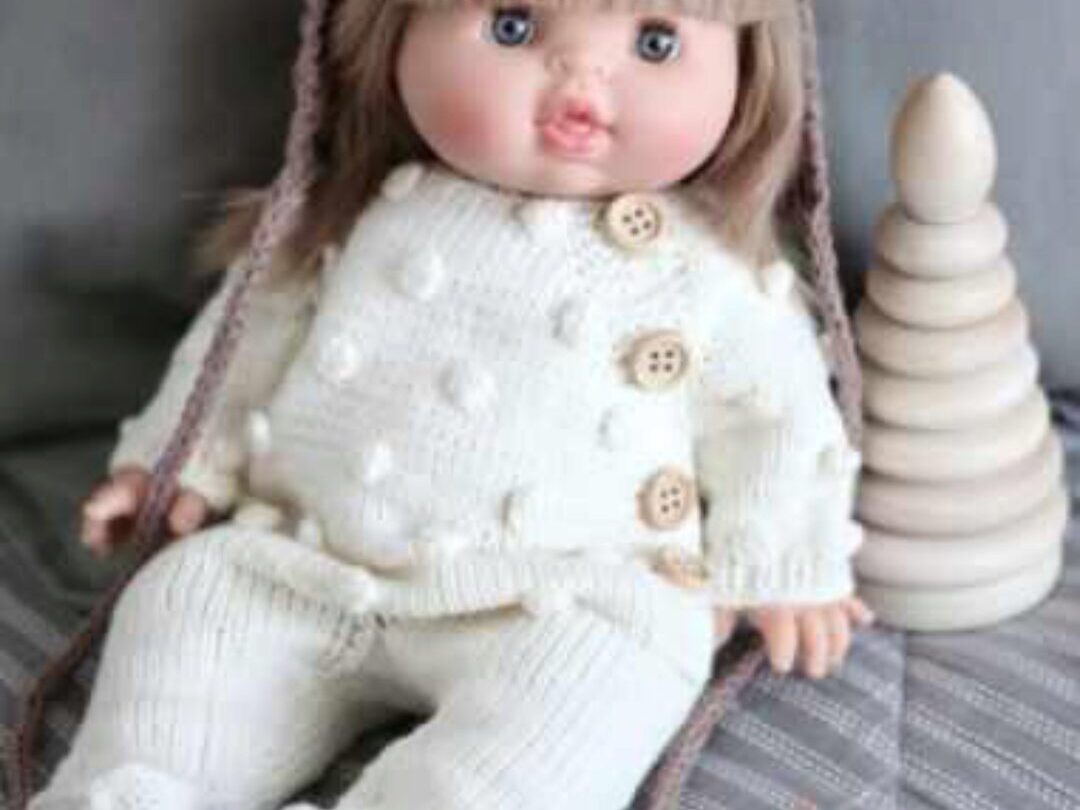 Описание вязания комплекта одежды для пупса Gordi PaolaReina 34см. По данному описанию вы свяжете платье, шапочку Эльф, трусики и ажурные гольфы. Комплект связан нитками Yarn Art Jeans 50г/160м, спицы номер 2.