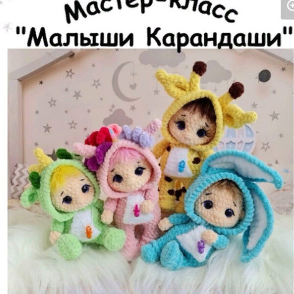 Данный МК не содержит уроков по вязанию крючком, уровень сложности – средний Видео отсутствует. Игрушка имеет суставное крепление. Рост готовой игрушки 14-16см.