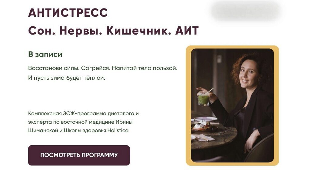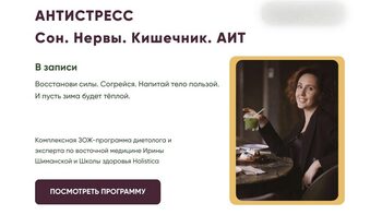 Комплексная ЗОЖ-программа диетолога и эксперта по восточной медицине Ирины Шиманской и Школы здоровья Holistica Худейте вкусно! Здоровые блюда как из ресторана Мишлен на вашей кухне Еда и ЗОЖ как альтернатива гормональным препаратам Режим дня для стройности и энергии Доступные травы и специи вместо