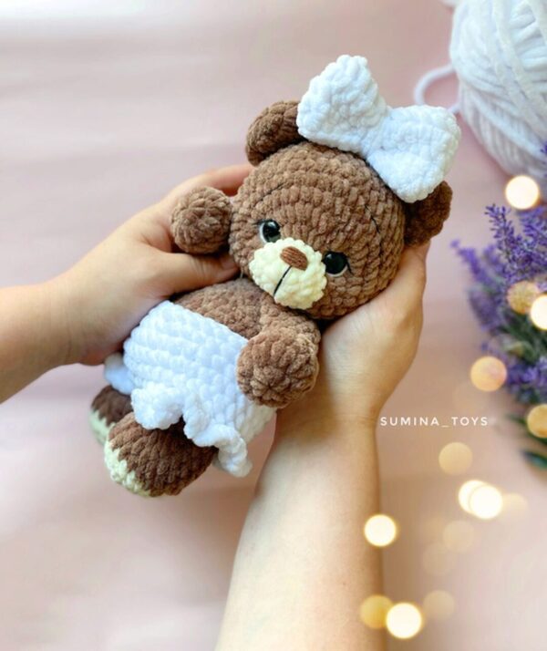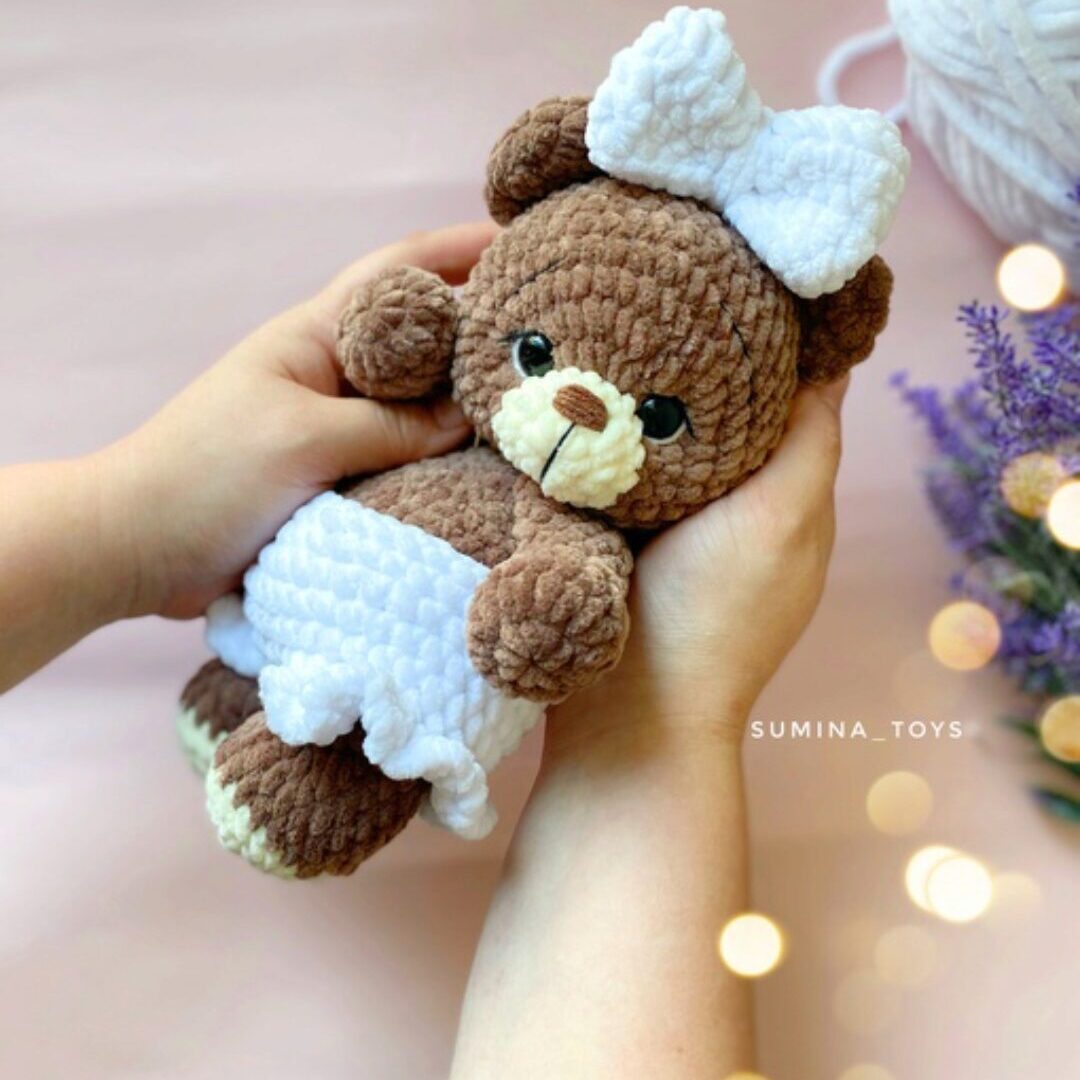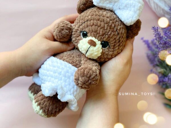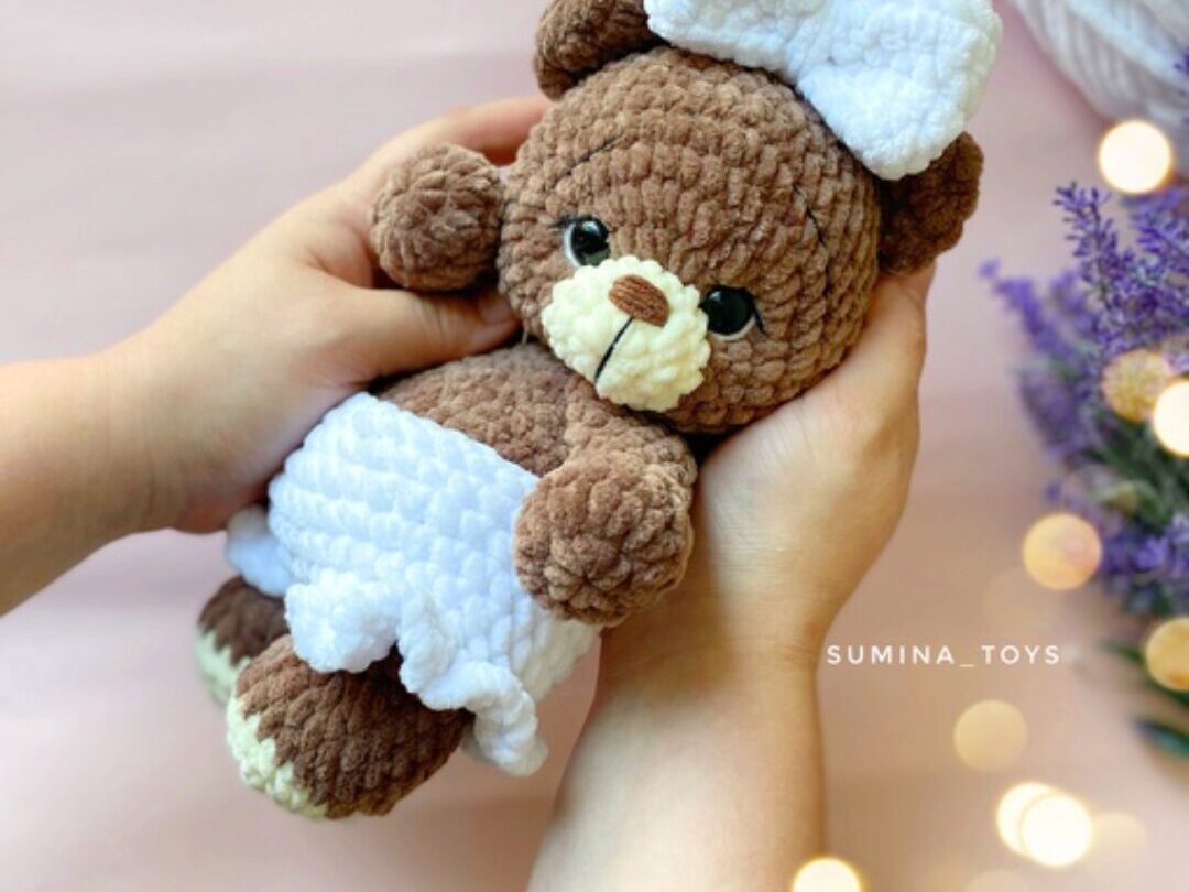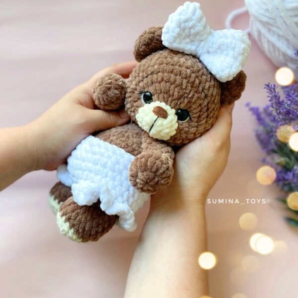 пришивается у мишки голова и хвостик, у зайчика голова, ушки, хвостик. Трусики съёмные, в описание, естественно будут входить. А ещё сосочка будет соска.
