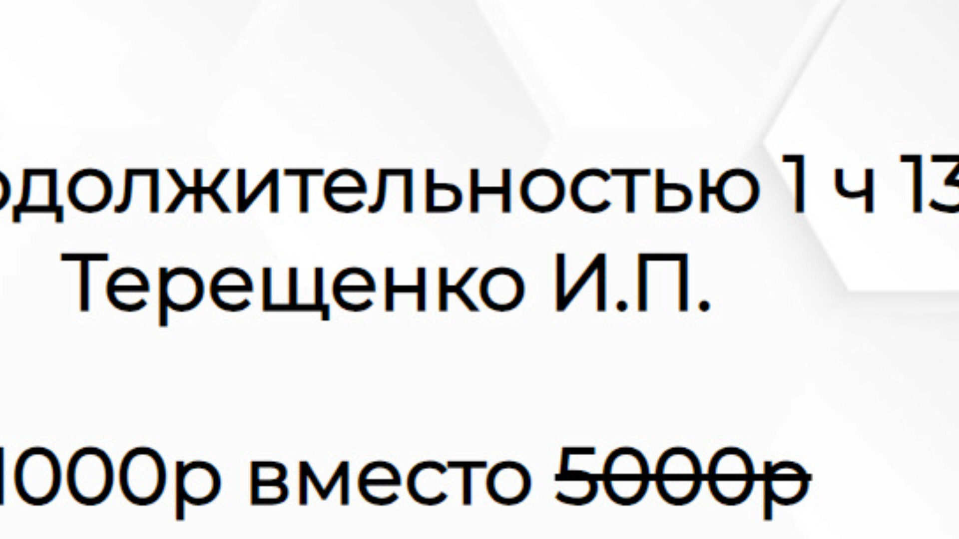 Вы получаете полный курс / тренинг со всеми материалами, но без обратной связи и поддержки автора Ирины Терещенко — именно это позволяет предложить такую выгодную цену. Вы учитесь в удобном ритме, без переплаты за сопровождение.