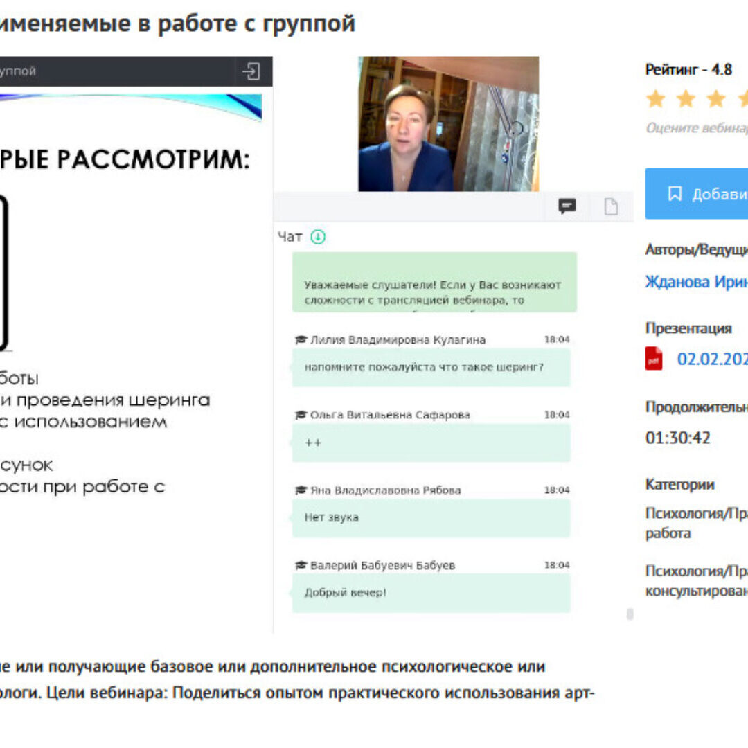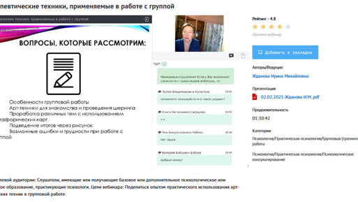 Ирина Жданова Вебинар «Арт-терапевтические техники, применяемые в работе с группой» — УИПКиП слив скачать