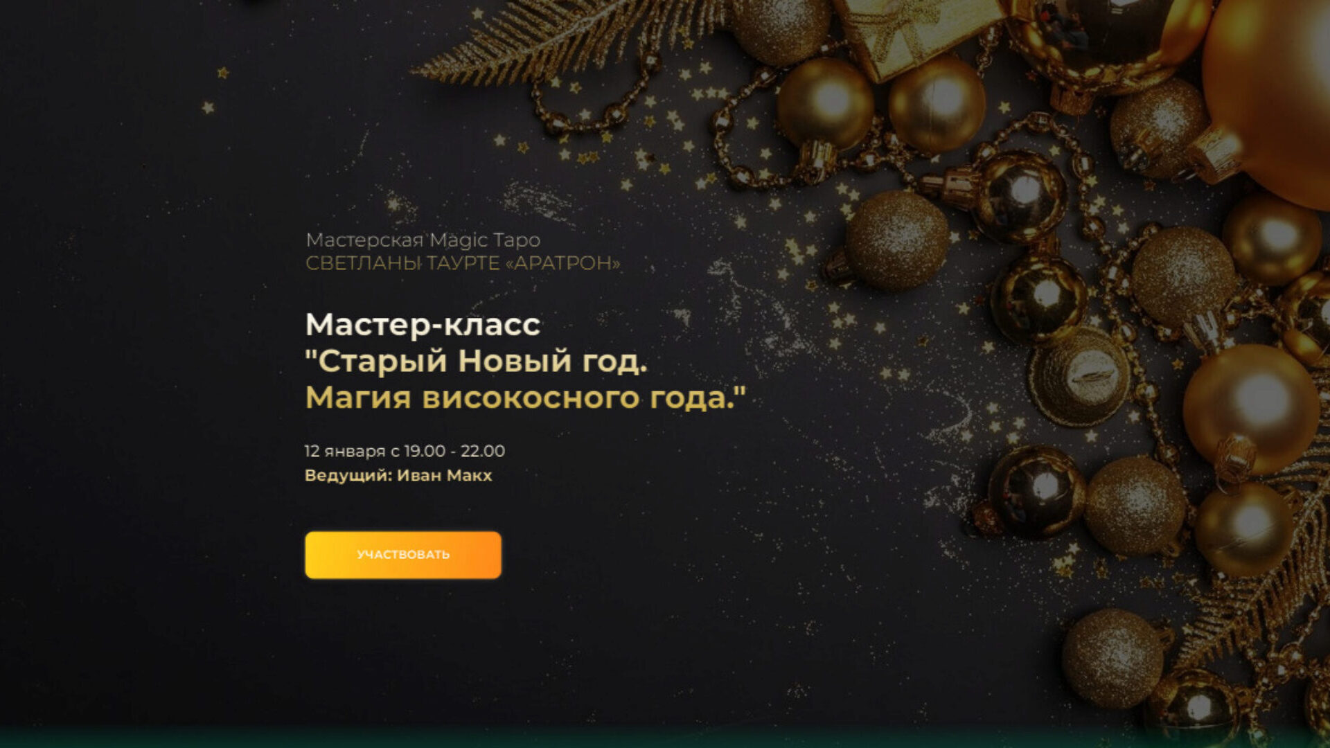 [Aratron] Вебинар Старый Новый год Магия самого названия уже манит: одновременно Старый и Новый год... А знаете ли вы, что это последняя возможность нашаманить себе счастья на 2023 год? Теперь знаете! Это действительно волшебная ночь, когда можно исправить все, что не нравится, что угрожает,