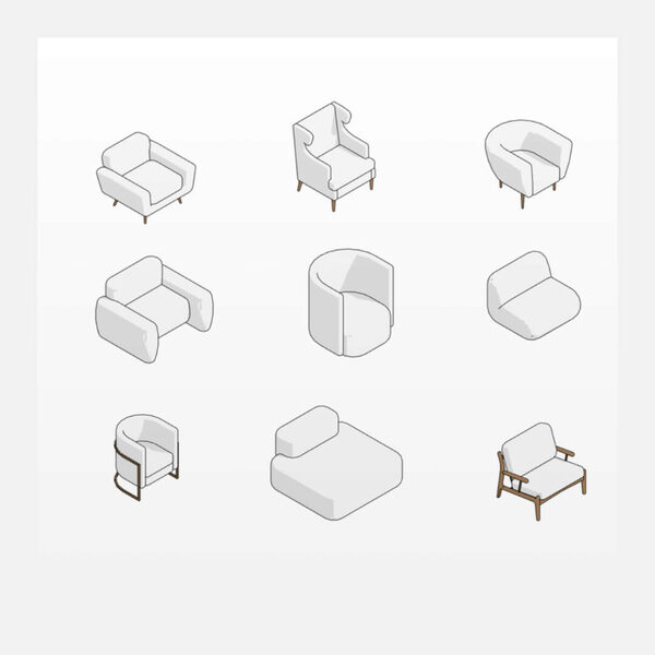 Курс INT Lines - Семейства Кресла, автор Иван Зылёв. Семейства кресел для дизайнеров интерьера и архитекторов с меняющимися шириной и глубиной и высотой сиденья