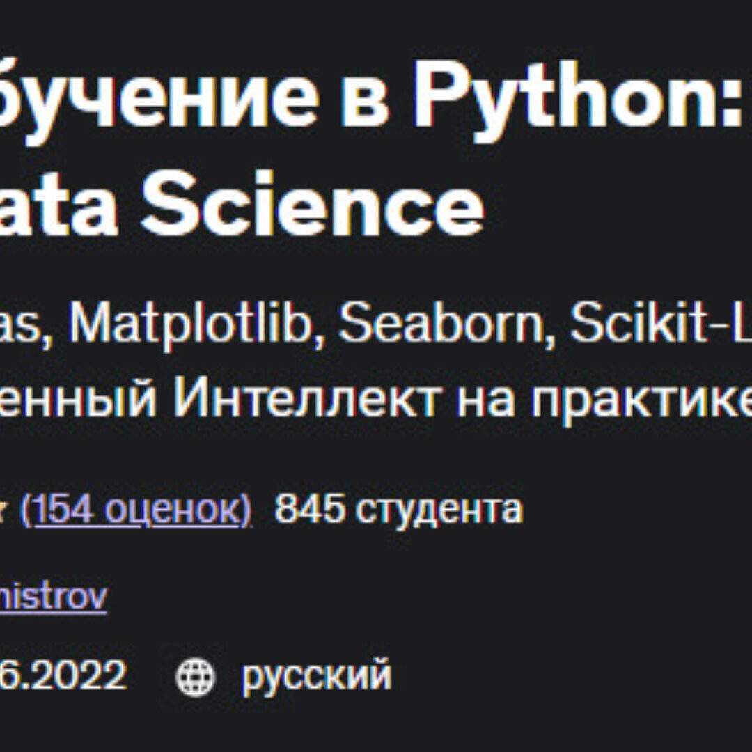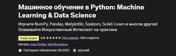 Этот курс - лучший способ начать с нуля и стать специалистом по data science и машинному обучению с помощью Python.