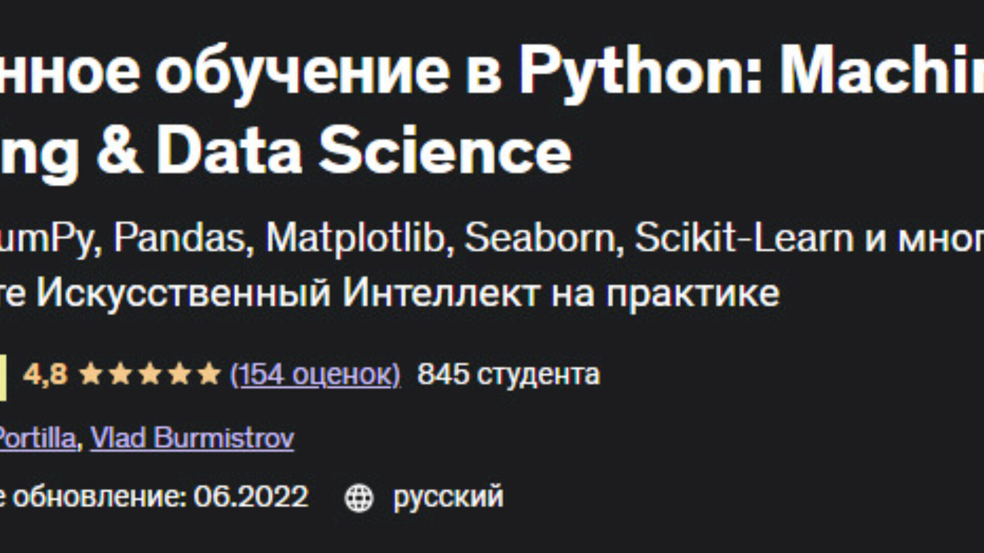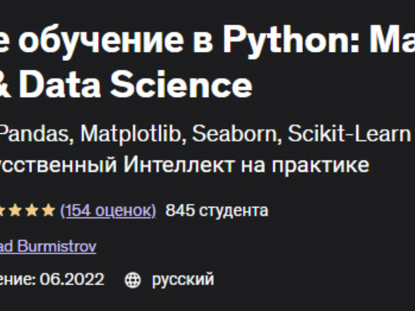 Отзывы о курсе «Машинное обучение в Python: Machine Learning & Data Science» от Влада Бурмистрова