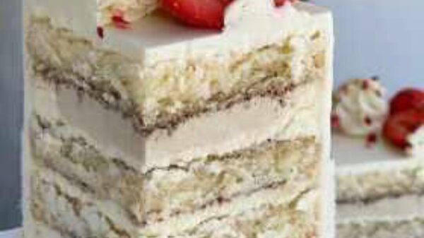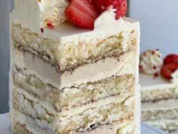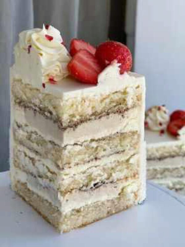 Торт «Ягодный пломбир»: нежный ванильный бисквит с чёрной смородиной, пропитка, ягодное конфи, ягодная намелака, сырный крем и мусс на белом шоколаде. Технологическая карта