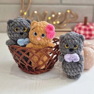 Мастер-класс в PDF формате Размер игрушки примерно 10 см. Ноги, тело, хвост, руки и голова вяжутся одной нитью. Пришивается только бантик.
