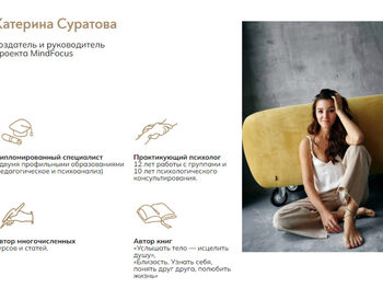 - В период беременности и первые полгода материнства (проконсультируйтесь со своим психологом или с Катериной Суратовой напрямую, если чувствуете, несмотря на противопоказания, что этот интенсив вам нужен).