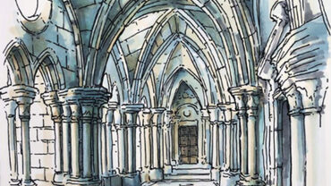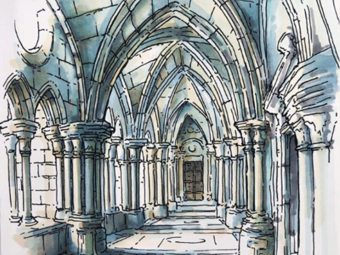 Нарисуем свои первые скетчи готических строений, в которых мы запечатлеем атмосферу готической архитектуры. На этом этапе это будут уже не отдельные элементы, а их взаимодействие, интересные узловые решения.