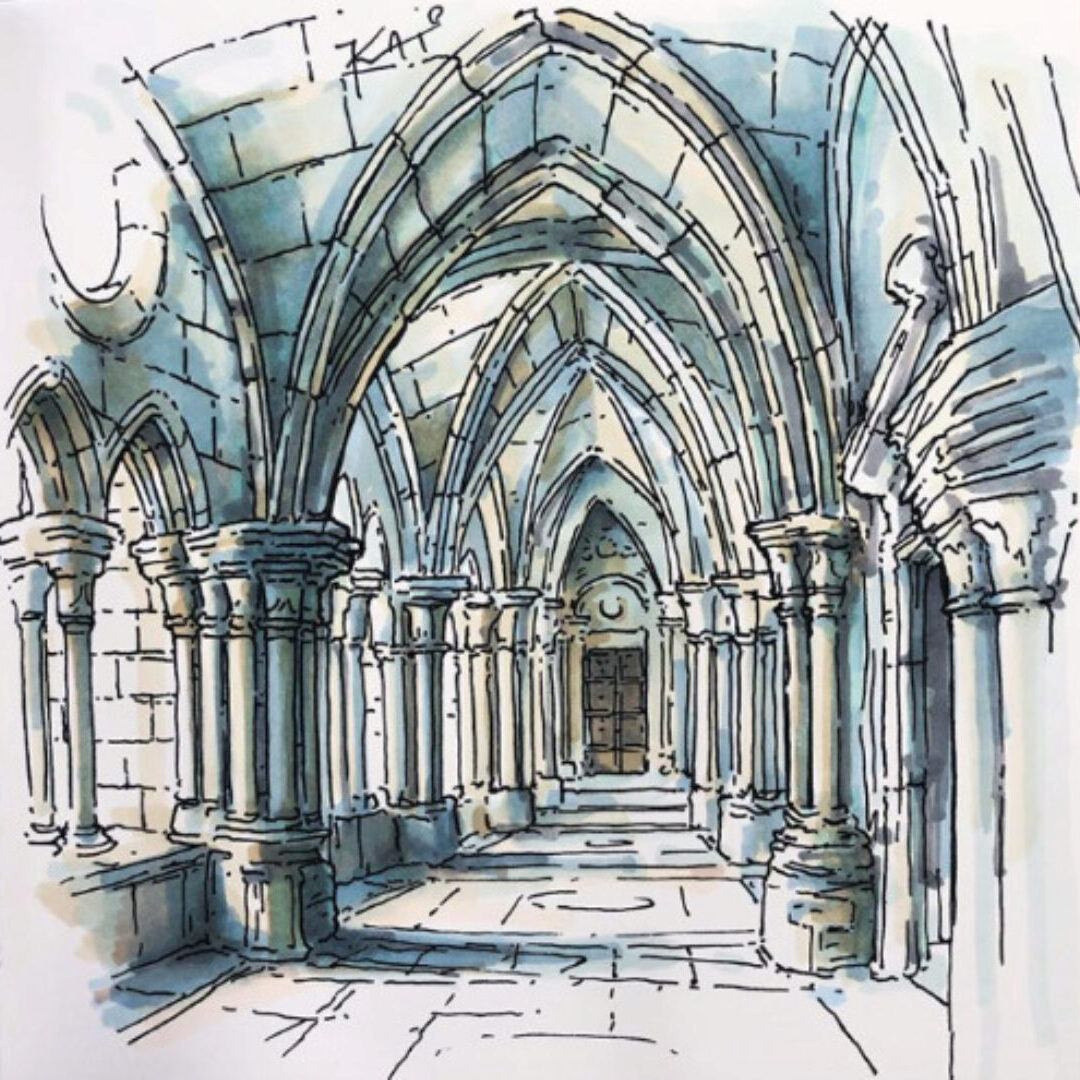 Курс Архитектурный скетчинг. Готика, автор Като Иванникова. Пугающе величественная готика отправляется в наши скетчбуки! Буду делиться с вами, как рисовать этот самый изысканный архитектурный стиль.