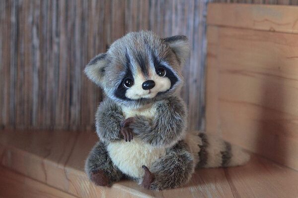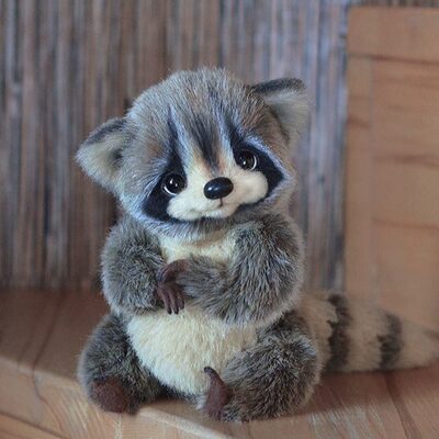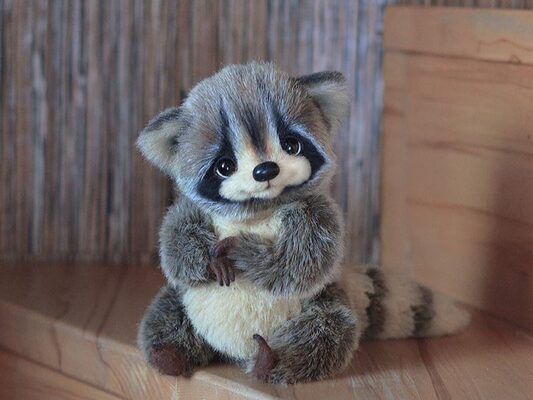 Выкройка + очень подробное (42 страницы) пошаговое описание процесса создания енота с использованием авторских приемов + ВИДЕОРОЛИКИ, в которых показан процесс стрижки мордочки, создания каркаса для лап, приваливание век, тонировка.