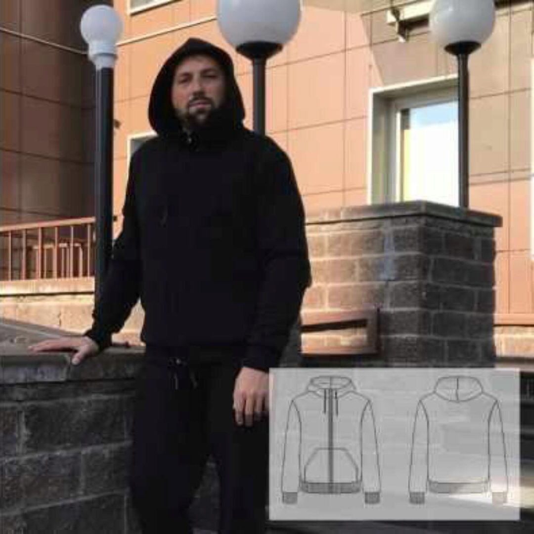 Курс Мужская толстовка Storm 44-64, автор Катя Мхитарян. Выкройка мужской толстовки на молнии с капюшоном, манжет с прорезью для пальца, размеры 44-64 в одном файле и без припусков на швы