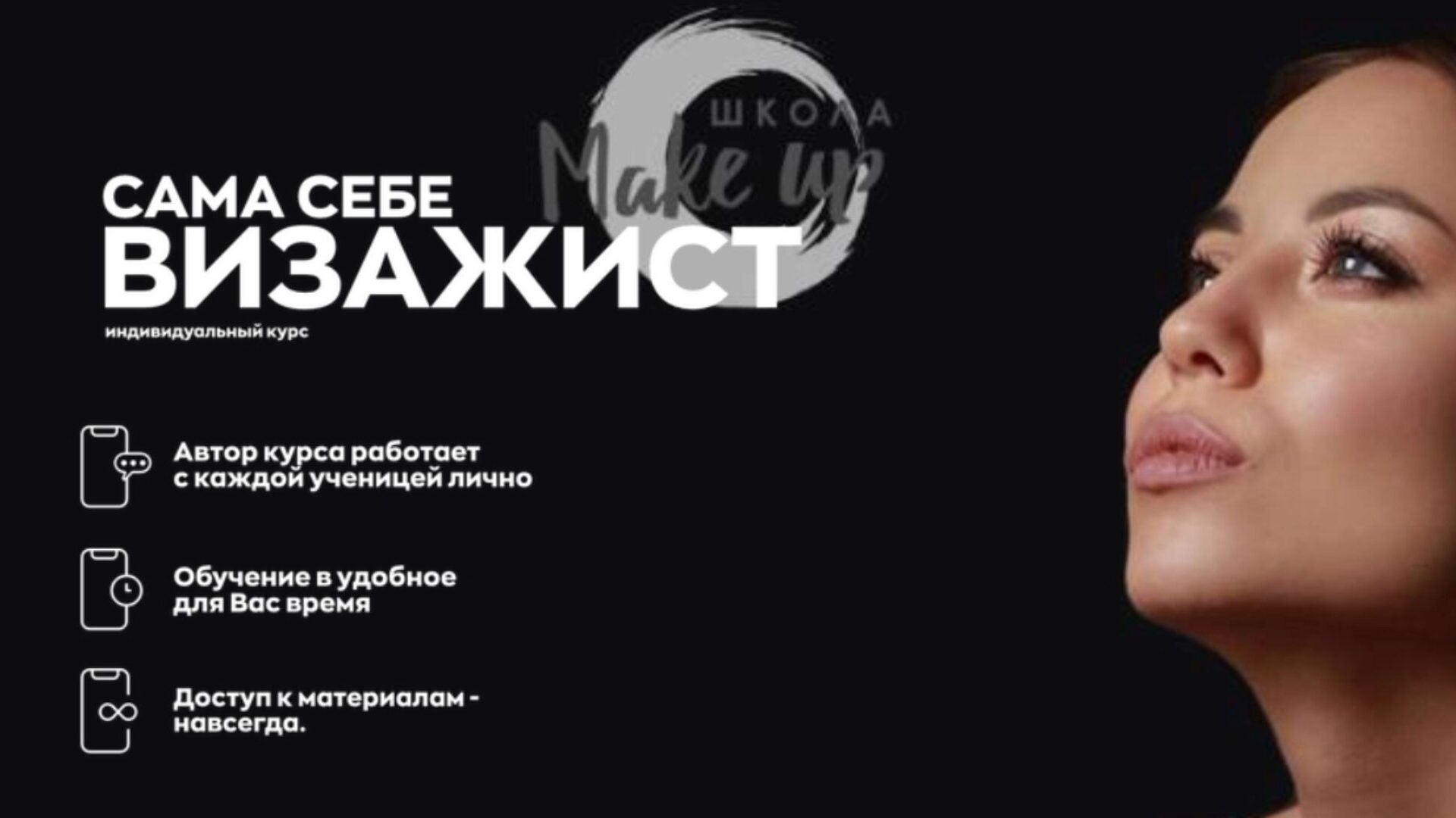 Курс «Сам себе визажист» или «Макияж для себя» Дистанционный online курс 4 дня обучения Тетрадь Видео по смоки айз Видео вечерний макияж Видео дневной макияж Видео летний бронзовый макияж Видео макияж без макияжа Видео макияж на каждый день Видео макияж осень Видео нежный макияж Видео о проблеме