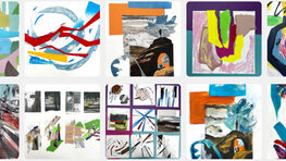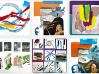 — Выполните 4 композиции на холсте, начиная с простых коллажных поисков на бумаге.